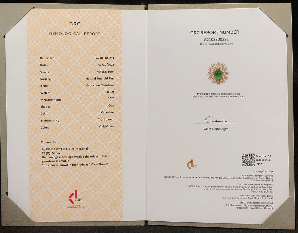 | 标题 | 4.07ctMuzogreen祖母绿戒指/吊坠18K金镶1.39ct钻石 | ||