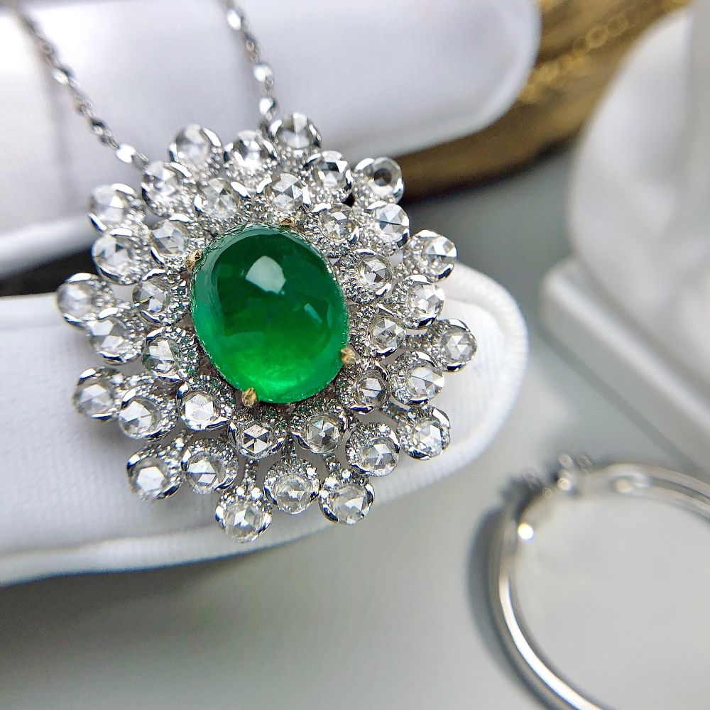 | 产品简介: | 4.07ctMuzogreen祖母绿戒指/吊坠,18K金镶1.39ct钻石,戒面饱满通透起光,大颗粒玫瑰钻点缀花型,精致奢华 | ||